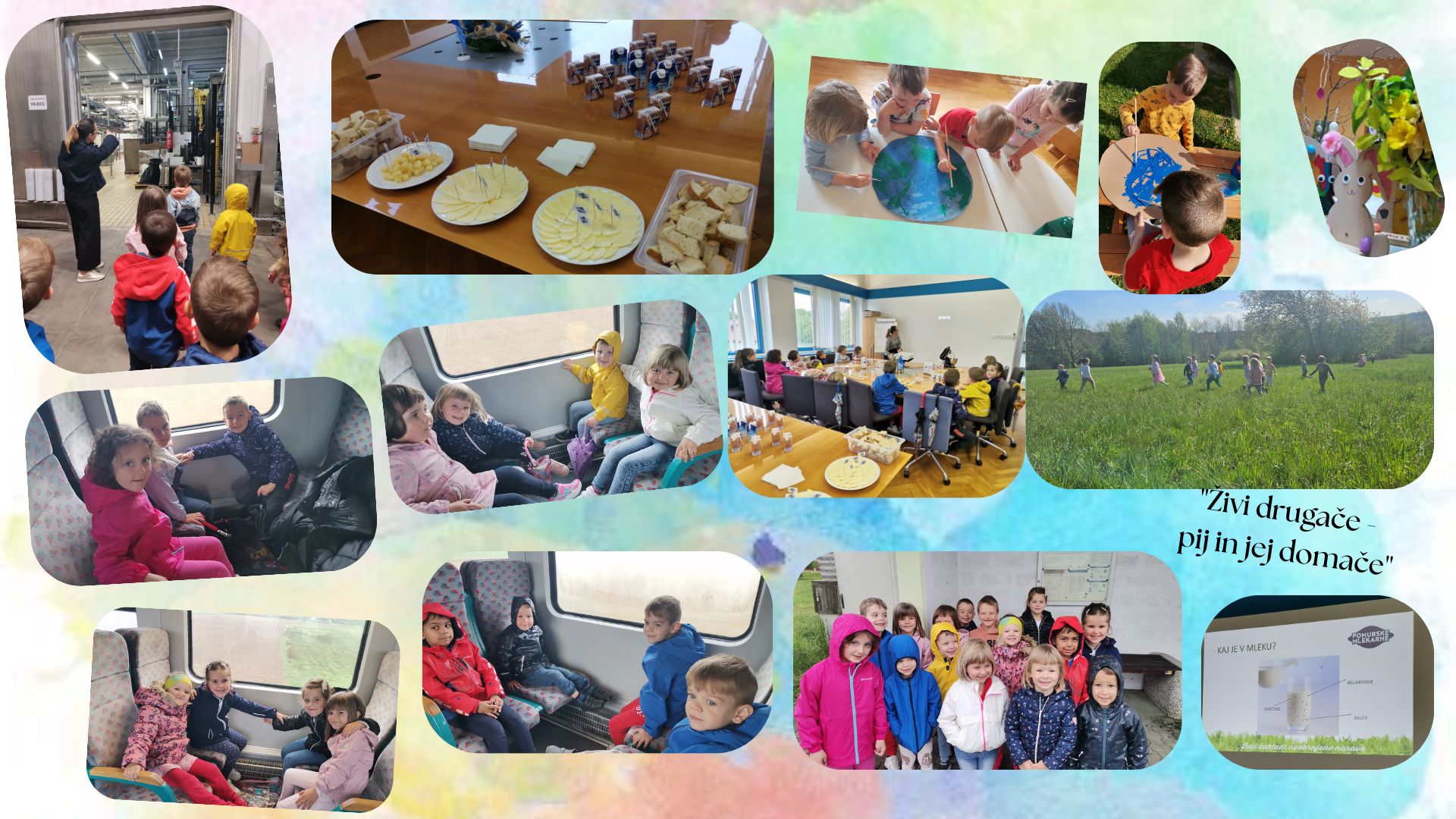 Podrobneje smo spoznali tudi pravljico Janko in Metka. Še posebej so se otroci razveselili, ko smo si na to temo šli ogledat lutkovno predstavo v Gledališče Park Murska Sobota. Pri tem smo uporabili javni prevoz – nekateri so se prvič peljali z avtobusom. Pred samo lutkovno predstavo smo si ogledali še prostore v Pokrajinski študijski knjižnici. Nato pa smo se peš odpravili do gledališča, vzdušje je bilo pričakujoče, otroci so bili navdušeni, in ko so se luči zatemnile, je vse postalo še bolj čarobno. Predstava je bila zelo zanimiva ter poučna. Igralci so bili izjemno prepričljivi, posebej še čarovnica, ki je znala nasmejati občinstvo. Zgodba nas je spomnila, kako pomemben je pogum, vztrajnost ter zaupanje med sorojenci. Otroci so ob koncu glasno ploskali ter polnih novih vtisov smo se odpravili nazaj v vrtec. Veliko pozornosti smo namenili tudi zdravemu načinu prehranjevanja. Pogovarjali smo se tudi o tem ali moramo piti mleko ter o pomembnosti uživanja mleka ter mlečnih izdelkov. Spoznavali smo, katere živali nam dajejo mleko. Ter ob tem ponovili živalske družine. Dne 25.4.2025 smo se odpravili obiskat Pomurske Mlekarne Murska Sobota. Najprej smo se odpravili na postajo ter se odpravili na vožnjo z vlakom, peljali smo se do železniške postaje Murska Sobota, kjer smo izstopili. Za nekatere otroke je bilo to prvič, da so se peljali z vlakom. Iz železniške postaje smo se sprehodili do Pomurskih mlekarn. Kjer nas je pred vhodom že počakala Katja. Z njo smo se odpravili v sejno sobo, kjer nam je s predstavitvijo predstavila katere mlečne izdelke, njihova mlekarna izdeluje. Ob sami predstavitvi so otroci tudi izdelke okušali. Izvedena je bila tudi delavnica za otroke ( nastanek masla). Obisk mlekarne z otroki je bila zelo poučna ter zabavna izkušnja. Spoznali so sam transport mleka, kako nastane mleko – od krave do končnega izdelka. Ogledali so si same prostore za predelavo mleka. Prav tako pa je za njih bila to tudi senzorična izkušnja – otroci so okušali: mleko, sir, skuto,… Polni novih izkušenj smo se odpravili na avtobusno postajo ter se z njim odpeljali nazaj v Šalovce. Na to temo so otroci izdelali tudi skupni plakat. Mesec maj je bil poln barv tudi v naši igralnici. Kajti otroci so ustvarjali pomladne motive – cvetlice, pikapolonice, metulje,…Svoje izdelke pa so z veseljem okrasili v igralnici. Veliko časa pa smo preživeli tudi na igrišču, sprehodih,… ter opazovali spremembe v naravi. Maj je bil igriv, poučen ter poln veselja. Starejši otroci zrelo zaključujejo svojo vrtčevsko pot, ob tem pa vsak dan pokažejo, kako veliko so že zrasli – ne le v višino, temveč tudi v znanju, čustvovanju in prijateljstvu.